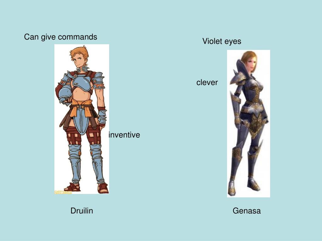 Can give commands Violet eyes clever inventive Druilin Genasa