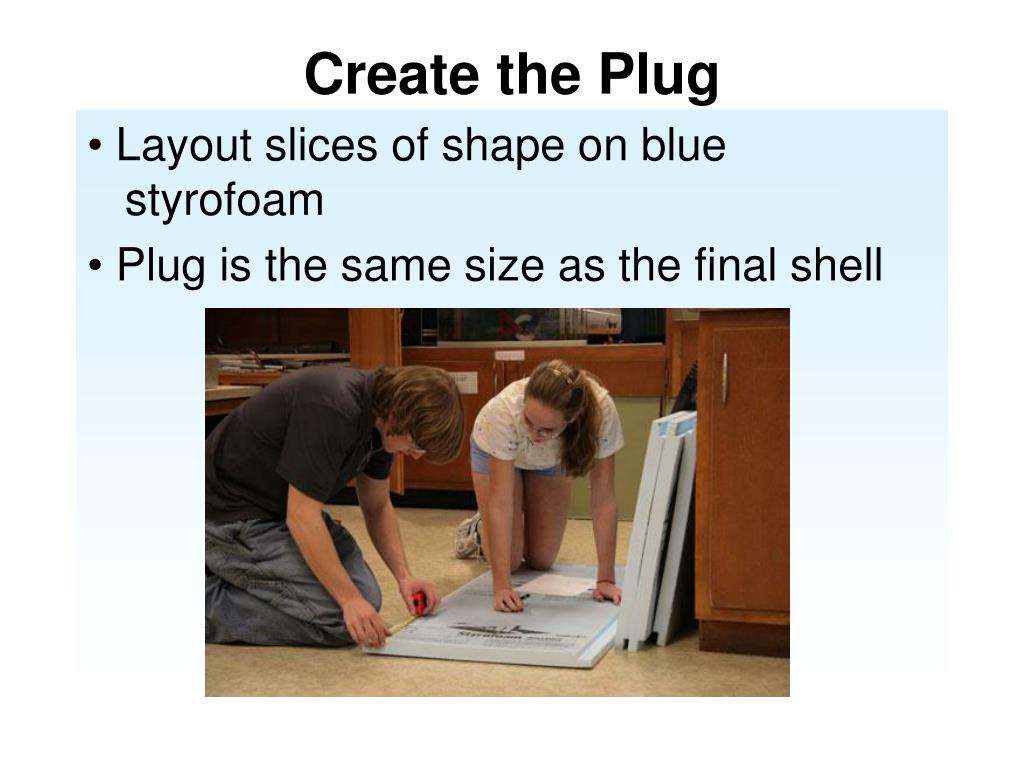 Create the Plug Layout slices of shape on blue styrofoam Plug is the same size as the final shell
