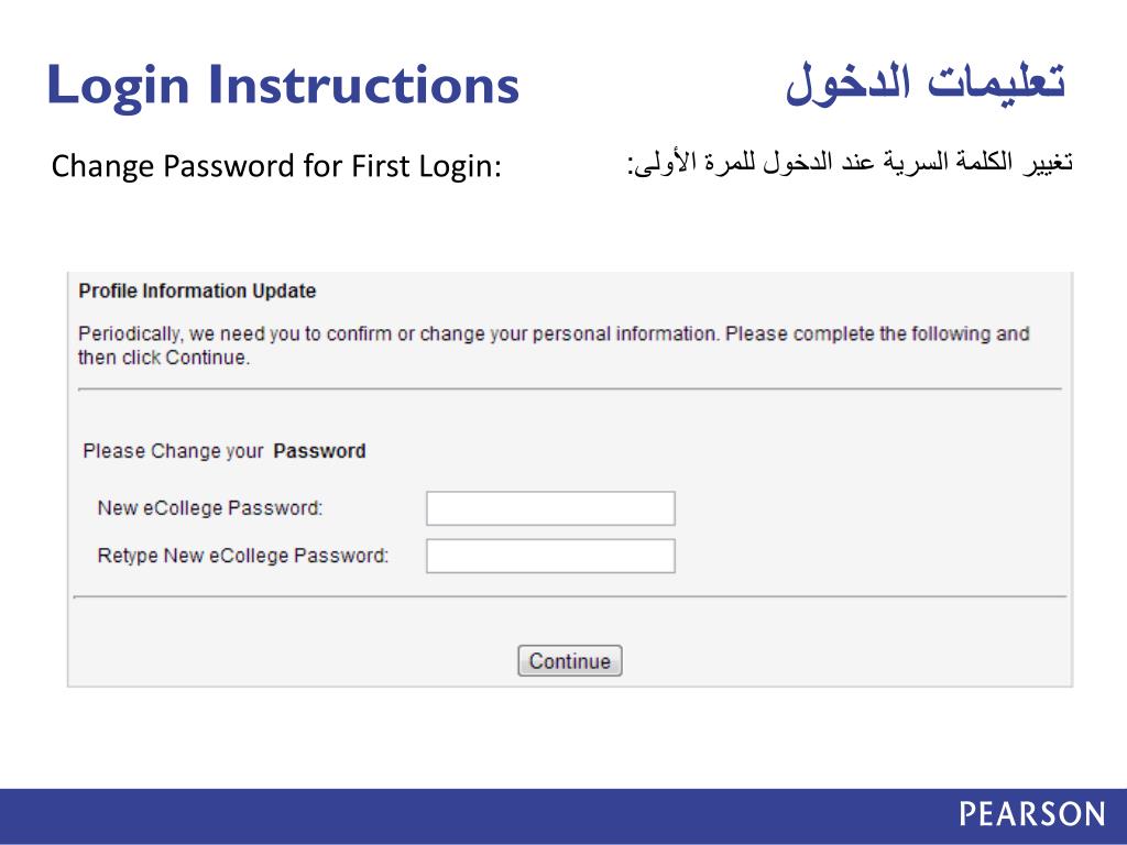 Login Instructions تعليمات الدخول Change Password for First Login: تغيير الكلمة السرية عند الدخول للمرة الأولى: