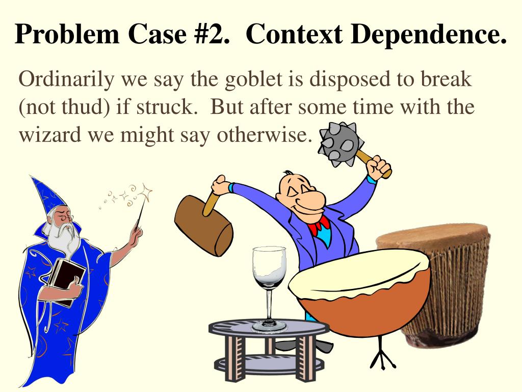 Problem Case #2. Context Dependence. Ordinarily we say the goblet is disposed to break (not thud) if struck. But after some time with the wizard we might say otherwise.