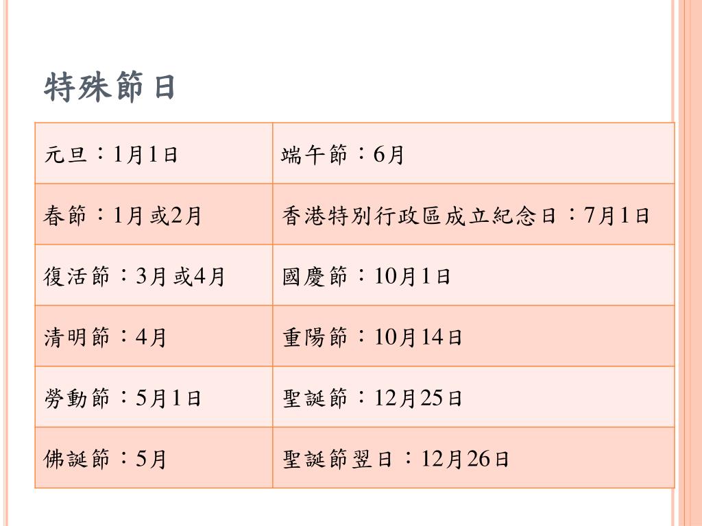 目錄 • 香港基本介紹 • 旅遊景點 • 飲食文化 • 特殊節日 • 文化特色 • 產業結構 • 經貿環境