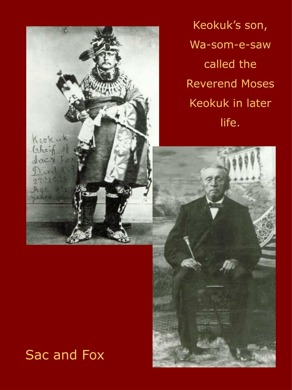 Keokuk’s son, Wa-som-e-saw called the Reverend Moses Keokuk in later life. Sac and Fox
