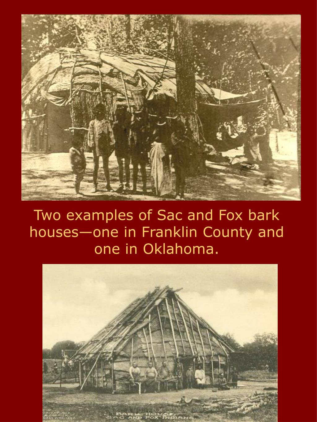 Two examples of Sac and Fox bark houses—one in Franklin County and one in Oklahoma.