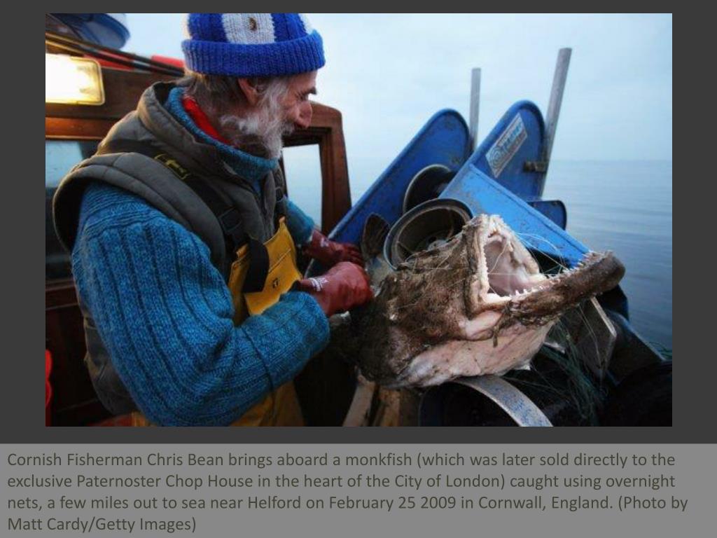 Cornish Fisherman Chris Bean brings aboard a monkfish (which was later sold directly to the exclusive Paternoster Chop House in the heart of the City of London) caught using overnight nets, a few miles out to sea near Helford on February 25 2009 in Cornwall, England. (Photo by Matt Cardy/Getty Images)