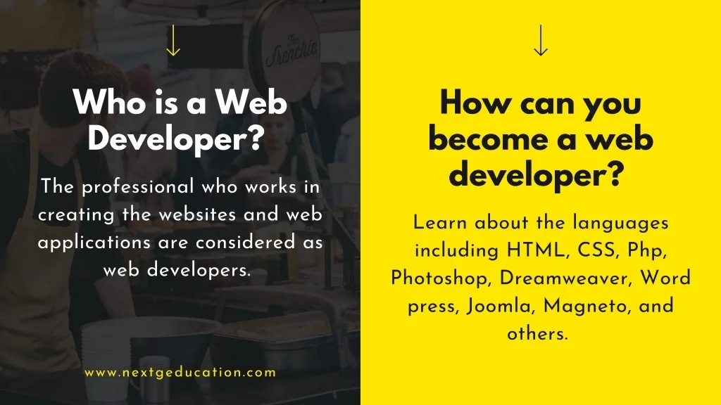 Who is a Web Developer? How can you become a web developer? The professional who works in creating the websites and web applications are considered as web developers. Learn about the languages including HTML, CSS, Php, Photoshop, Dreamweaver, Word press, Joomla, Magneto, and others. www.nextgeducation.com
