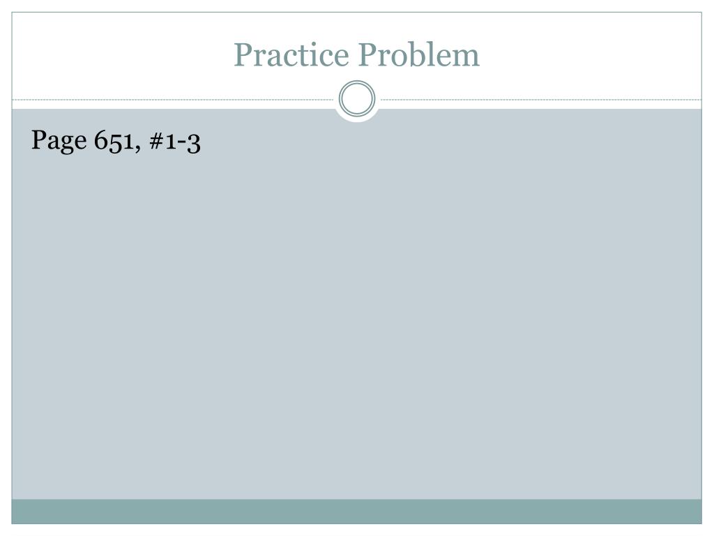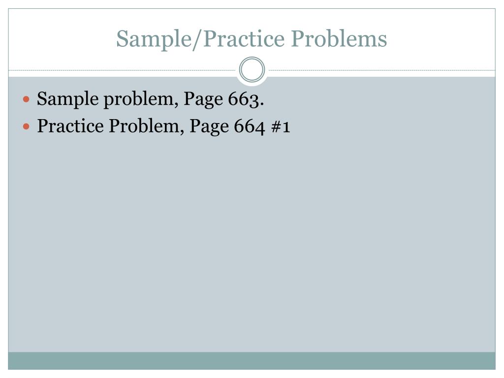 Sample/Practice Problems Sample problem, Page 663. Practice Problem, Page 664 #1