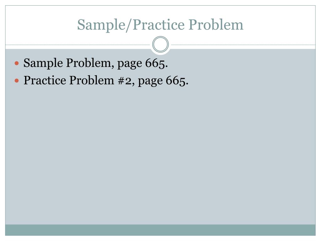 Sample/Practice Problem Sample Problem, page 665. Practice Problem #2, page 665.