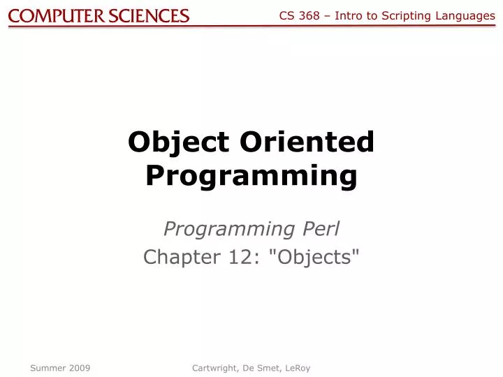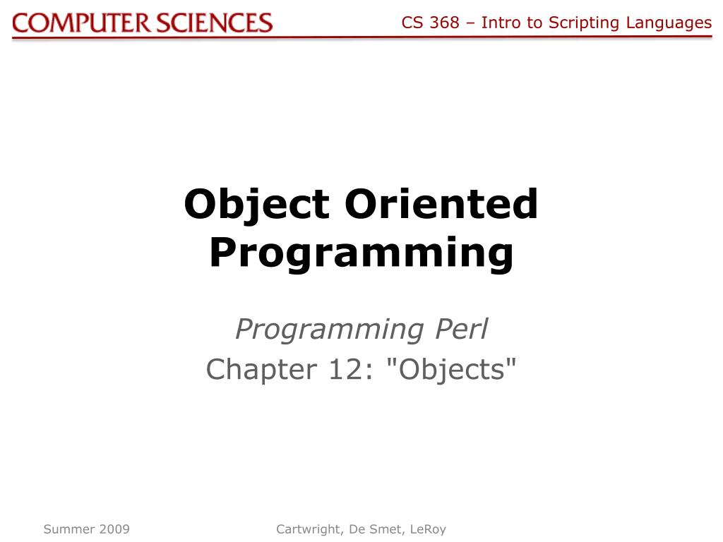 Object Oriented Programming Programming Perl Chapter 12: "Objects" Cartwright, De Smet, LeRoy
