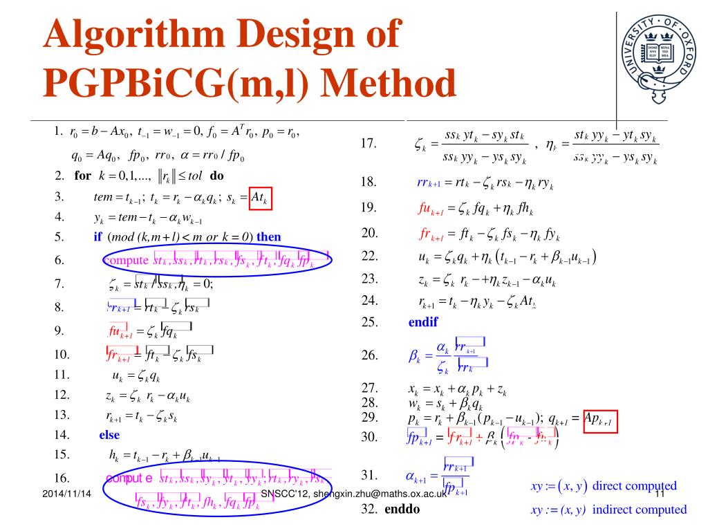 Algorithm Design of PGPBiCG(m,l) Method SNSCC'12, shengxin.zhu@maths.ox.ac.uk