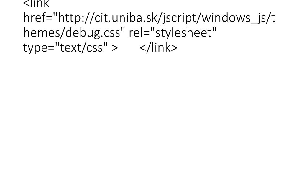 <link href="http://cit.uniba.sk/jscript/windows_js/themes/debug.css" rel="stylesheet" type="text/css" > </link>