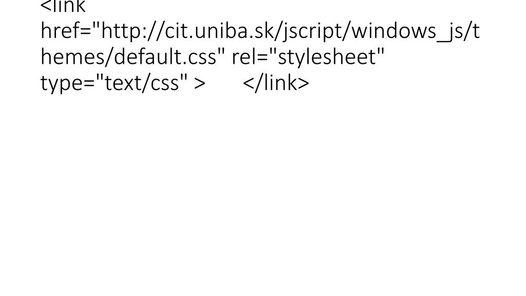 <link href="http://cit.uniba.sk/jscript/windows_js/themes/default.css" rel="stylesheet" type="text/css" > </link>