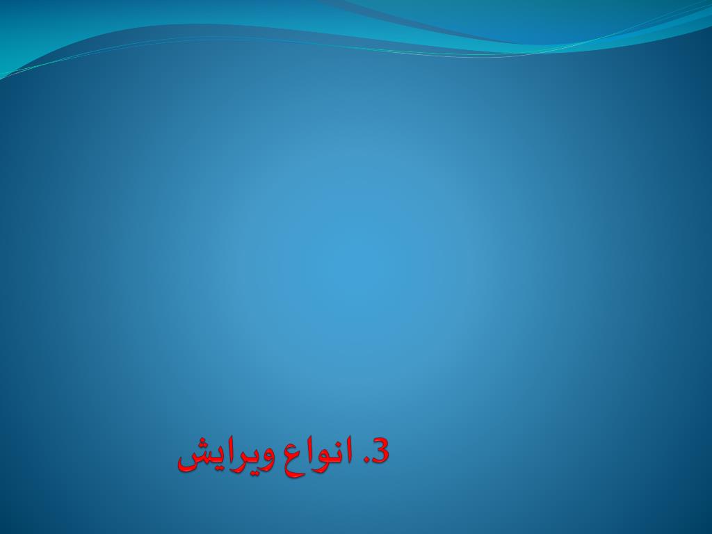 بسماللهالرحمنالرحیم. پژوهشگاه علوم انسانی و مطالعات فرهنگی. کلاسهای ویرایش. پاییز 1389. کلیات ویرایش. 1. مراحل چاپ کتاب 2. تعریف ویرایش 3. انواع ویرایش ویرایش فنی(صوری) ویرایش نگارشی(ادبی) ویرایش علمی(محتوایی) ویرایش جامع(اساسی) 4. لزوم ویرایش و نمونهخوانی.