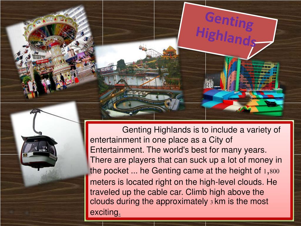 3. GentingHighlands Genting Highlands is to include a variety of entertainment in one place as a City of Entertainment. The world's best for many years. There are players that can suck up a lot of money in the pocket ... he Genting came at the height of 1,800 meters is located right on the high-level clouds. He traveled up the cable car. Climb high above the clouds during the approximately 3 km is the most exciting.