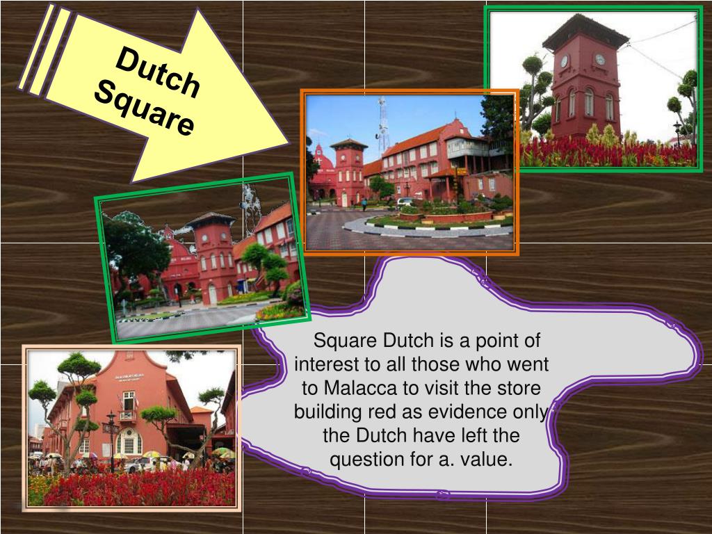 5. Dutch Square Square Dutch is a point of interest to all those who went to Malacca to visit the store building red as evidence only the Dutch have left the question for a. value.