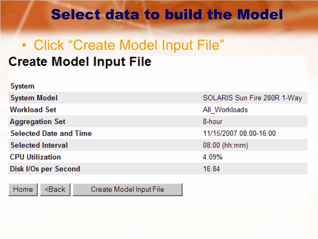 Select data to build the Model • Click “Create Model Input File” servername