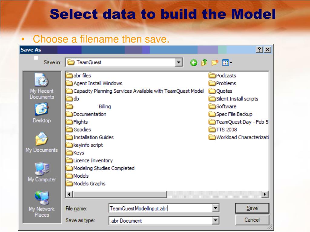 Select data to build the Model • Choose a filename then save.