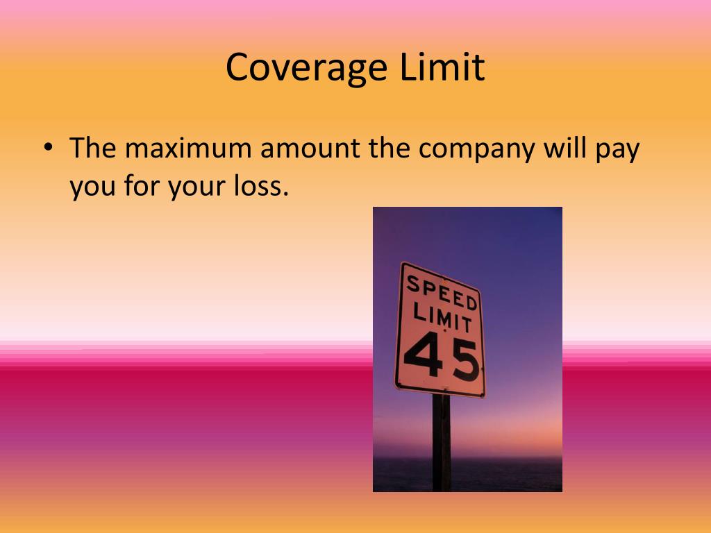 Coverage Limit • The maximum amount the company will pay you for your loss.
