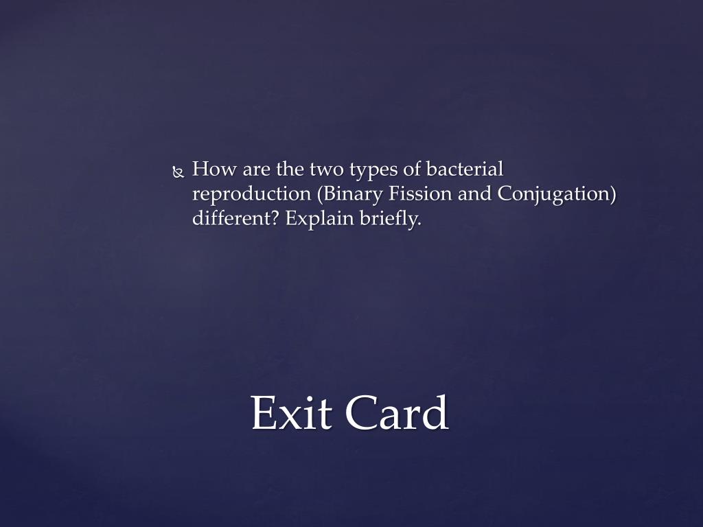 How are the two types of bacterial reproduction (Binary Fission and Conjugation) different? Explain briefly. Exit Card