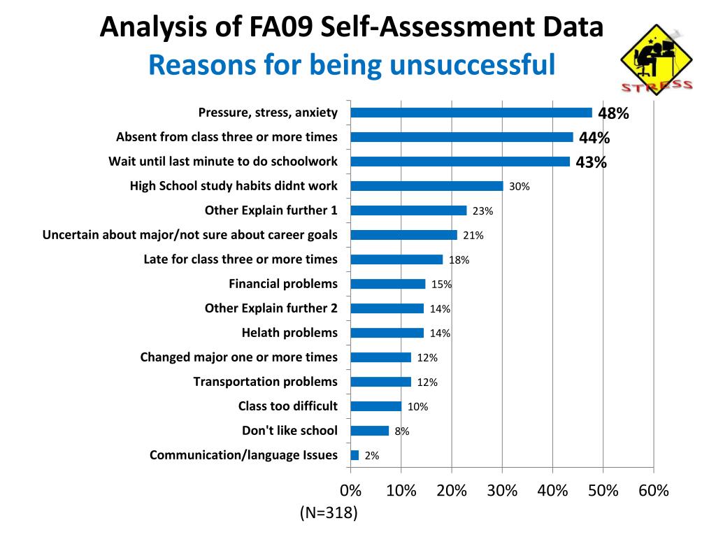 Analysis of FA09 Self-Assessment DataReasons for being unsuccessful (N=318)