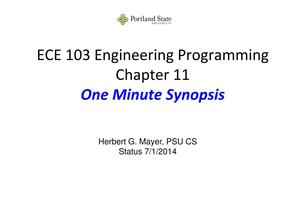 ECE 103 Engineering ProgrammingChapter 11One Minute Synopsis Herbert G. Mayer, PSU CS Status 7/1/2014