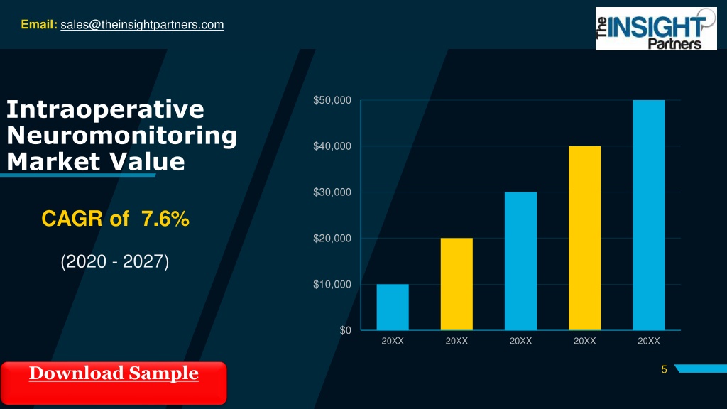 Email: sales@theinsightpartners.com Intraoperative Neuromonitoring Market Value $50,000 $40,000 $30,000 CAGR of 7.6% $20,000 (2020 - 2027) $10,000 $0 20XX 20XX 20XX 20XX 20XX Download Sample 5