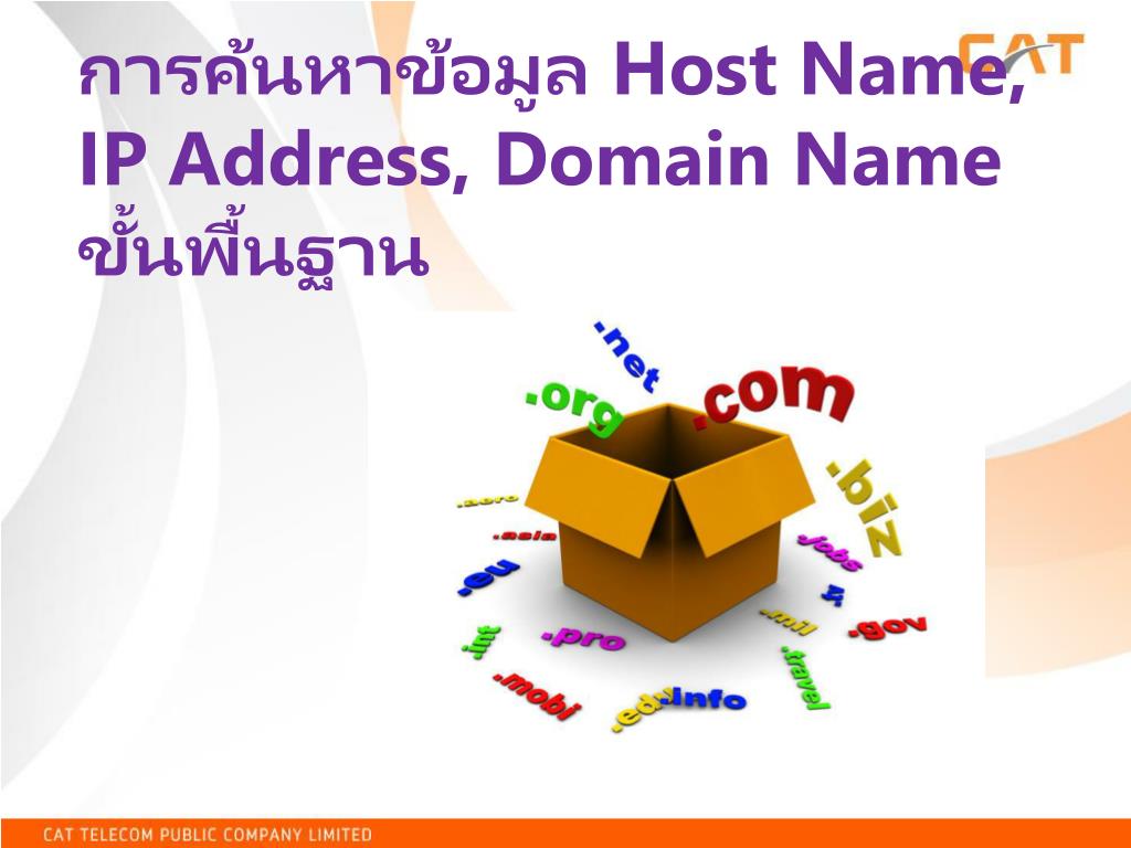 การ ค้นหาข้อมูล Host Name, IP Address , Domain Name ขั้นพื้นฐาน. โครงสร้างชื่อของระบบโดเมน. www.cattelecom.com www = ชื่อโฮสต์ c attelecom.com = ชื่อโดเมน www.south.cattelecom.com , phuket.south.cattelecom.com www , phuket = ชื่อโฮสต์ south.cattelecom.com โดเมนย่อย