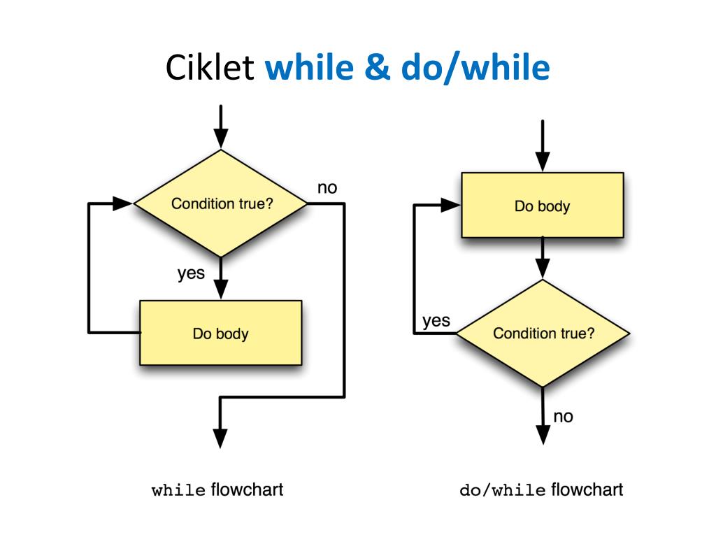 CikliDo/While Ciklido/whileeshtenje variant iciklitwhile. Kycikel do teekzekutojebllokun e koditnjehereperpara se tekontrollojenesekushtieshteiverteteapojo. Pastaj, cikli do teperseritet per aqkohesakushtiplotesohet. • Sintaksa do {bllokuikoditqe do teekzekutohet}while (kushti); • Shembull >> Cikli ne keteshembull do teekzekutohettepaktennjehere, edhe ne rast se kushtinukeshteiplotesuar (ivertete) per faktin se bllokuikoditndodhetpara se kushti e kontrolloje: do { x=x + “Numrieshte" + i + "<br>";i++; }while (i<5); Kujdes: Ne rast se nuk do territnivleren e variabliti, ateherecikli do tejeteipafundem.