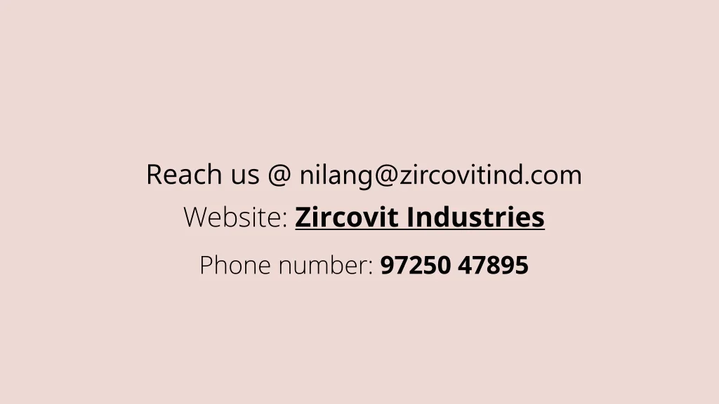 Reach us @ nilang@zircovitind.com Website: Zircovit Industries Phone number: 97250 47895