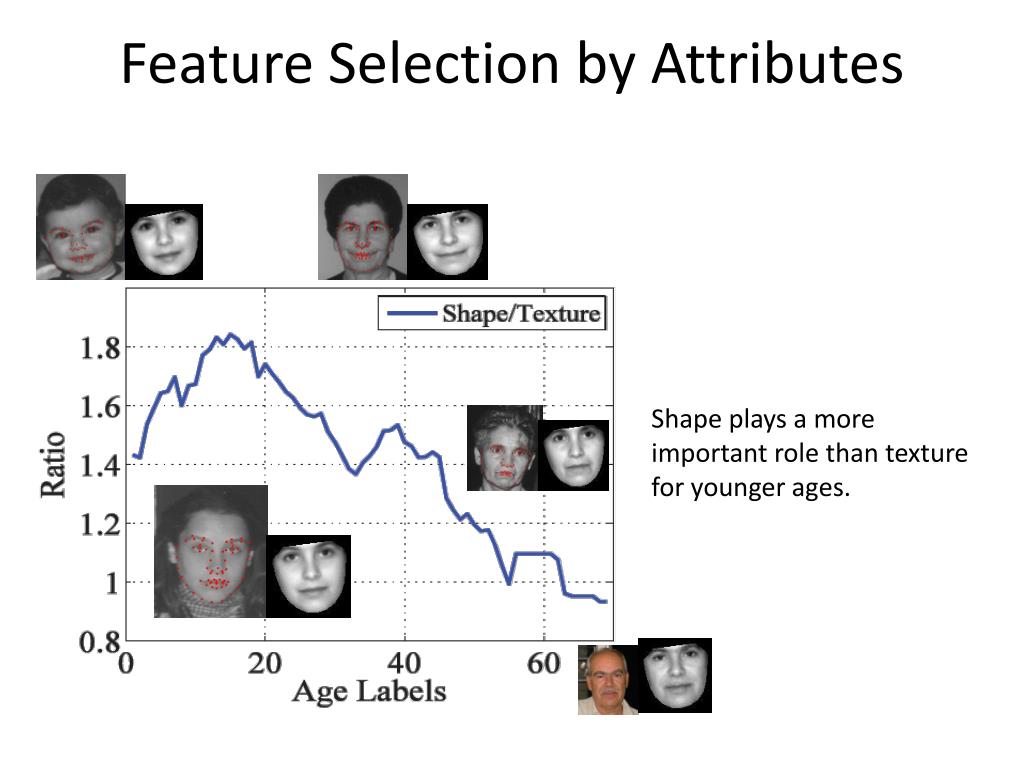 Feature Selection by Attributes Shape plays a more important role than texture for youngerages.
