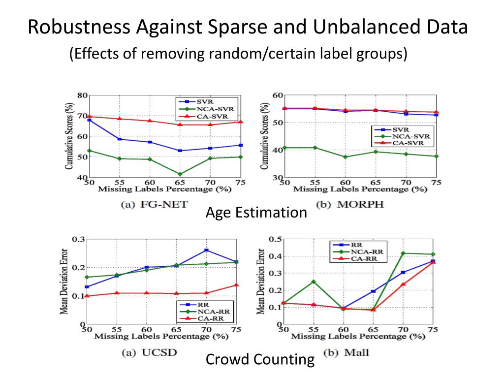 Robustness Against Sparse and Unbalanced Data (Effects of removing random/certain label groups) Age Estimation Crowd Counting