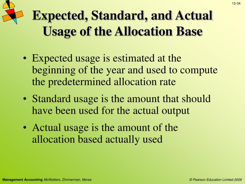 Expected, Standard, and Actual Usage of the Allocation BaseNumerical Example