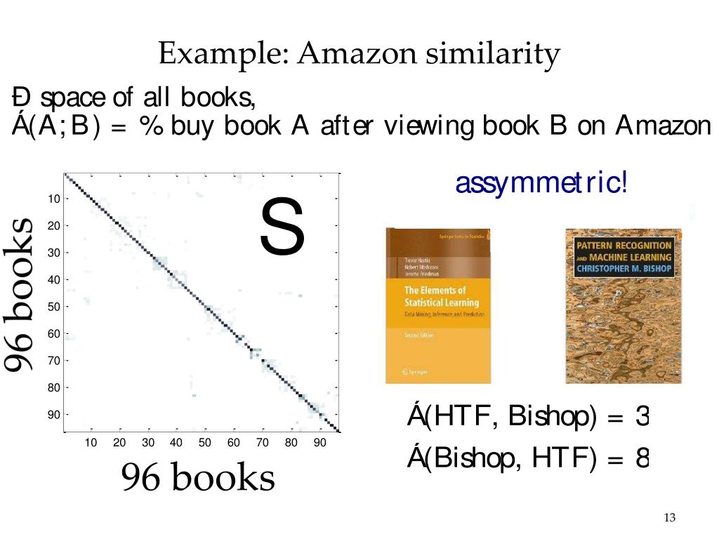 Example: Amazon similarity 96 books Eigenvalues Rank 96 books