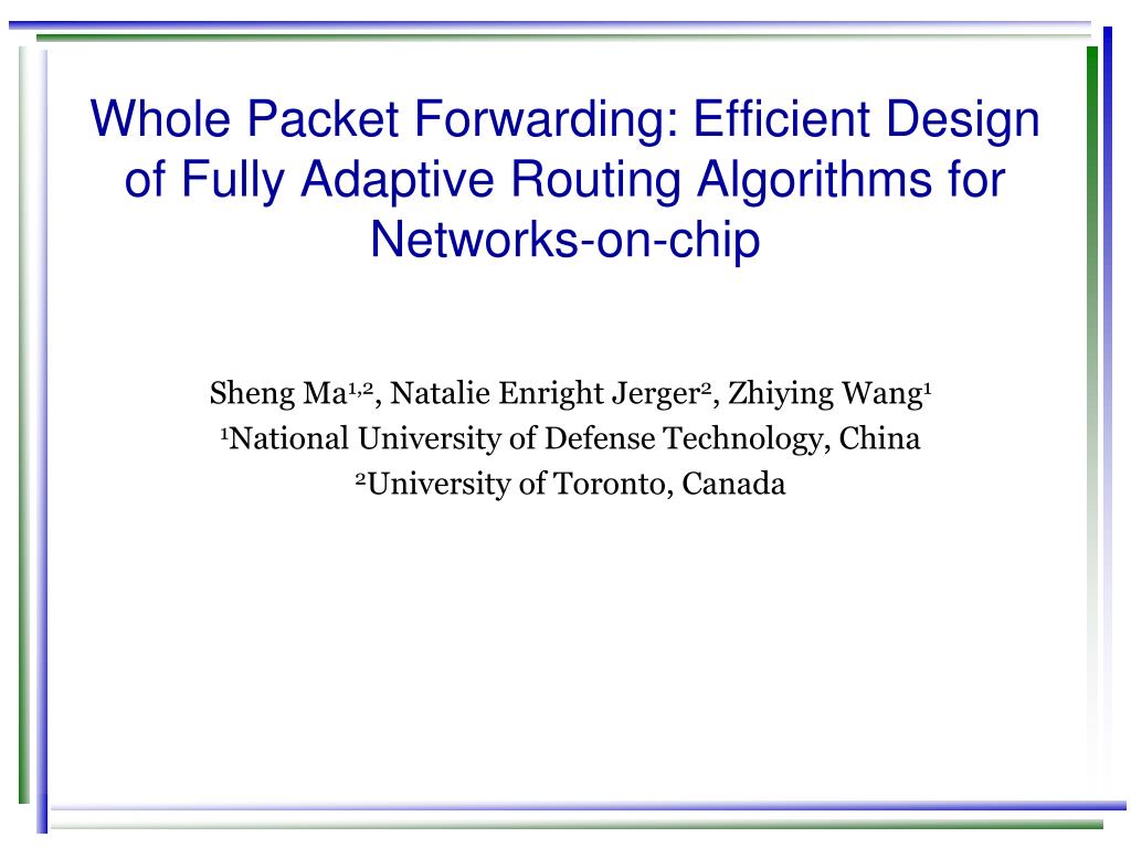 Whole Packet Forwarding: Efficient Design of Fully Adaptive Routing Algorithms for Networks-on-chip. Sheng Ma 1,2 , Natalie Enright Jerger 2 , Zhiying Wang 1 1 National University of Defense Technology, China 2 University of Toronto, Canada. Overview.