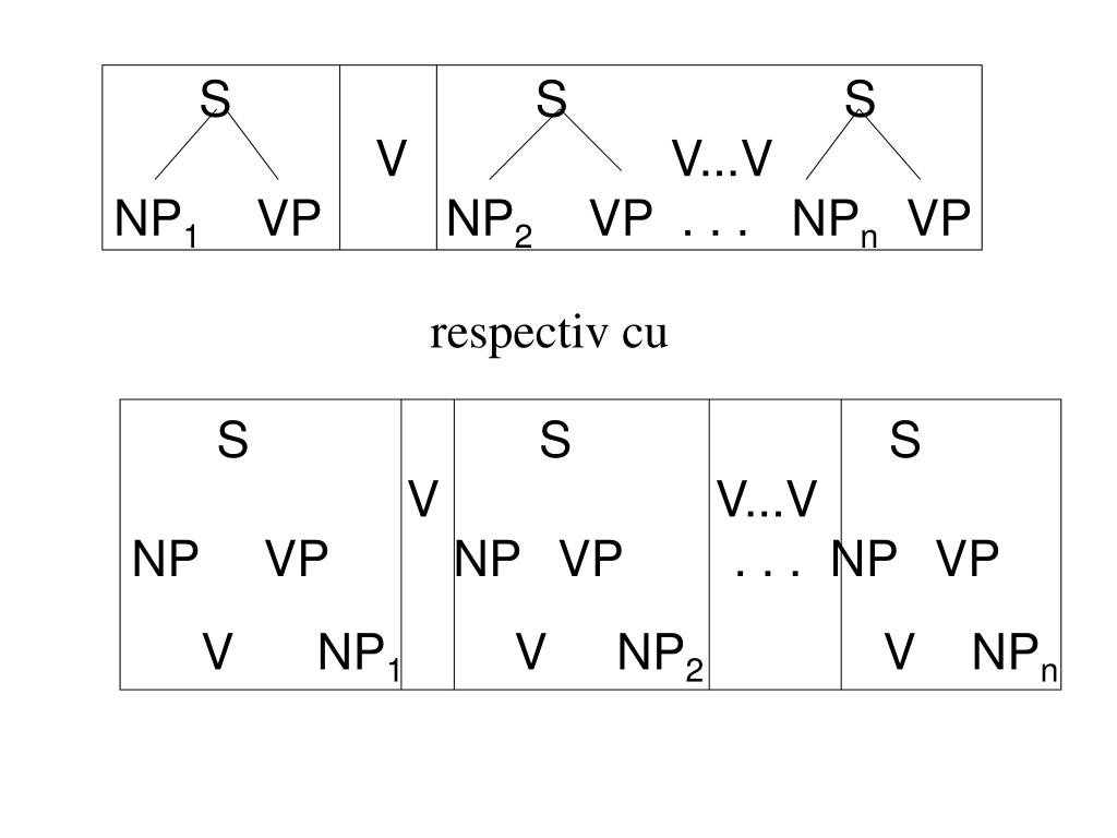 S S S V V...V NP1 VP NP2 VP . . . NPn VP respectiv cu S S S V V...V NP VP NP VP . . . NP VP V NP1 V NP2 V NPn