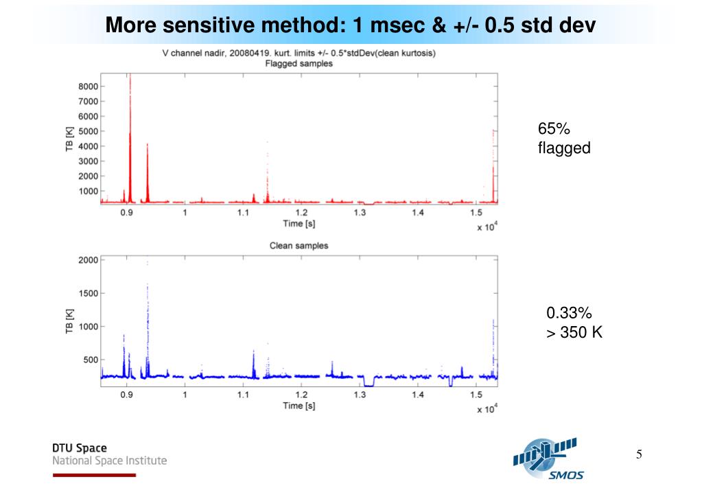 More sensitive method: 1 msec & +/- 0.5 std dev 65% flagged 0.33% > 350 K