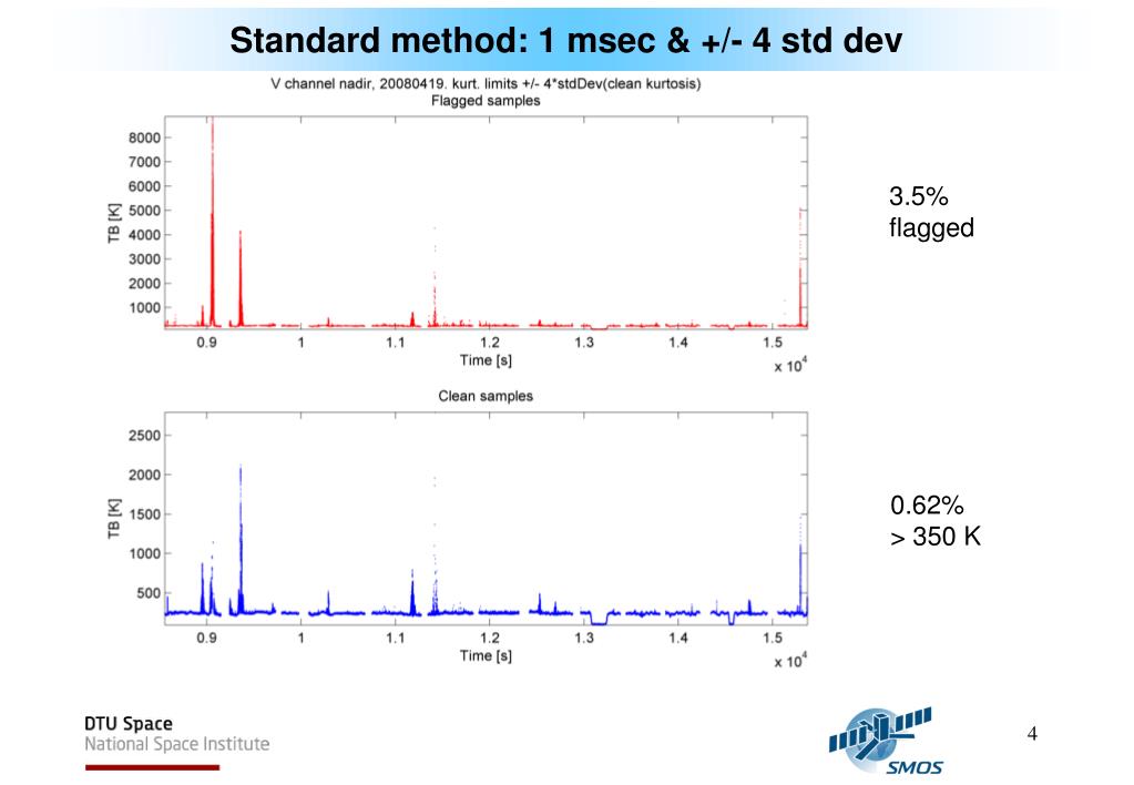 Standard method: 1 msec & +/- 4 std dev 3.5% flagged 0.62%> 350 K