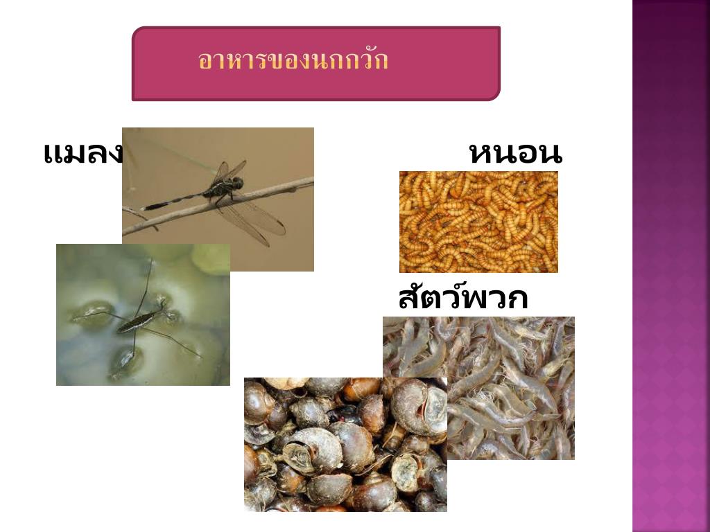 อาหารของนกกวัก แมลง หนอน สัตว์พวกmallus