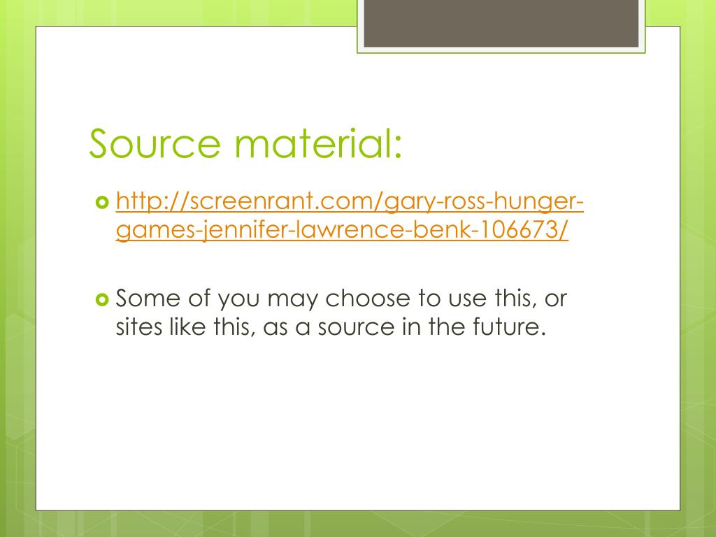 Source material: • http://screenrant.com/gary-ross-hunger-games-jennifer-lawrence-benk-106673/ • Some of you may choose to use this, or sites like this, as a source in the future.