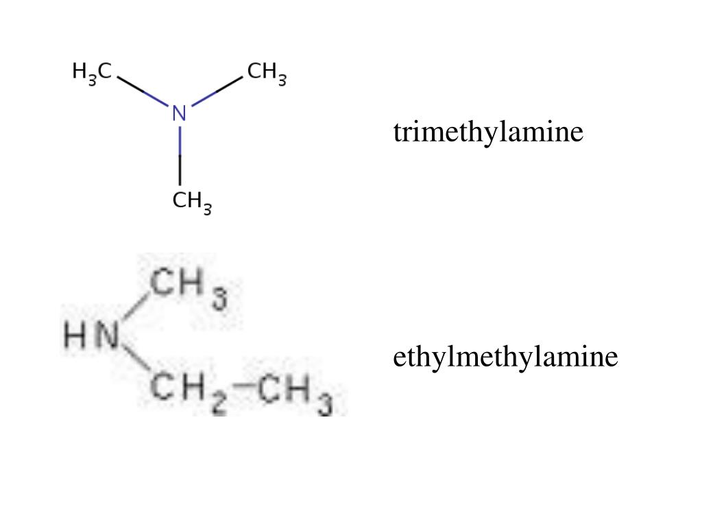 Amines functional group = amine group -named by groups attached and end with amine ex- ethylamine