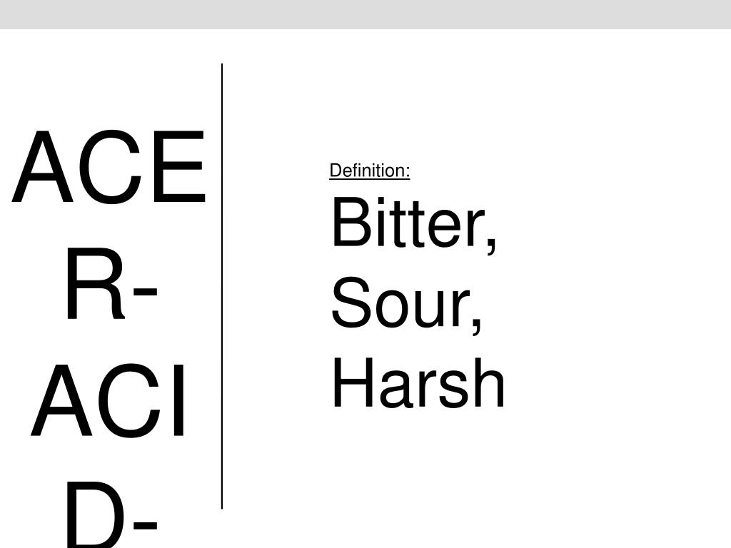 ACER- ACID- ACRI- Definition: Bitter, Sour, Harsh