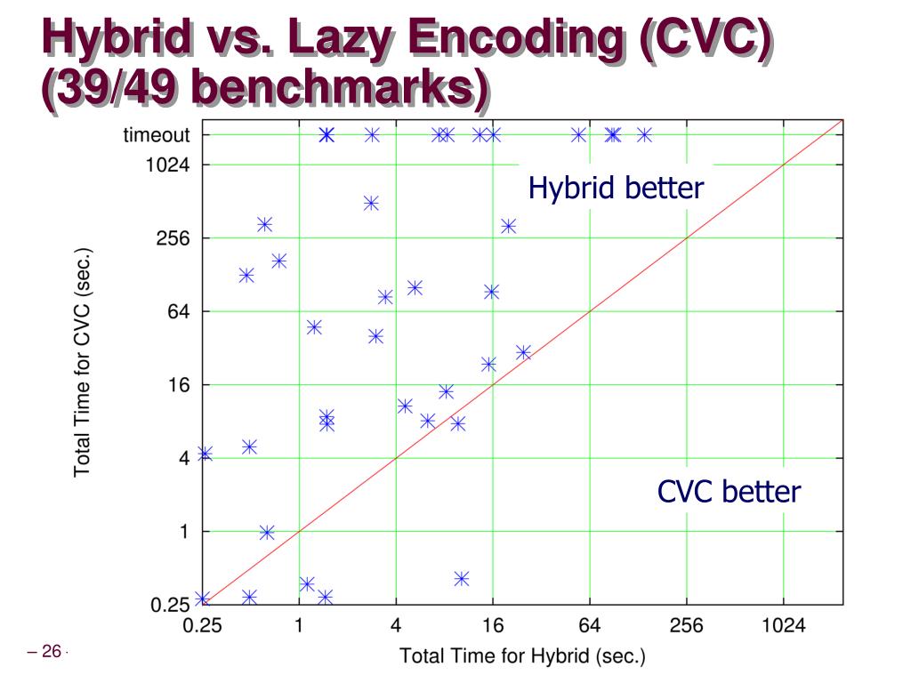 Hybrid vs. Non-SAT-based Procedure (SVC) (39/49 benchmarks) Hybrid better SVC better