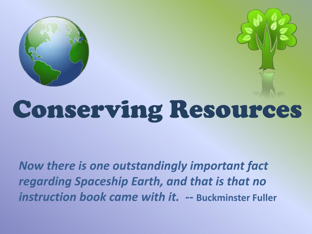 Conserving Resources Now there is one outstandingly important fact regarding Spaceship Earth, and that is that no instruction book came with it. -- Buckminster Fuller