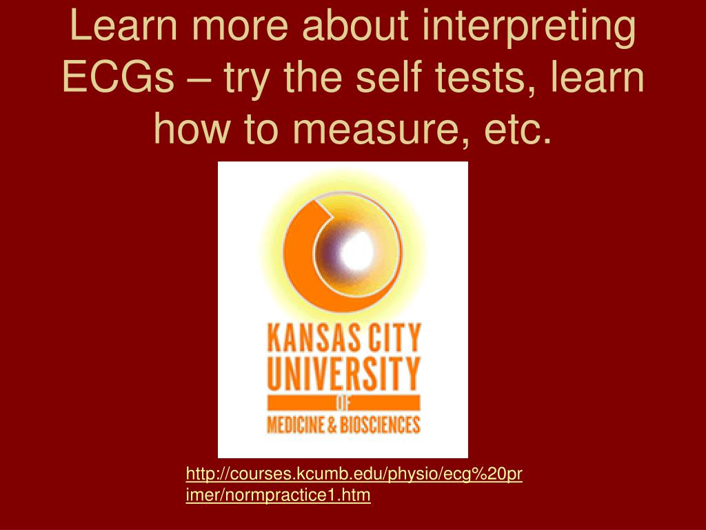 Learn more about interpreting ECGs – try the self tests, learn how to measure, etc. http://courses.kcumb.edu/physio/ecg%20primer/normpractice1.htm
