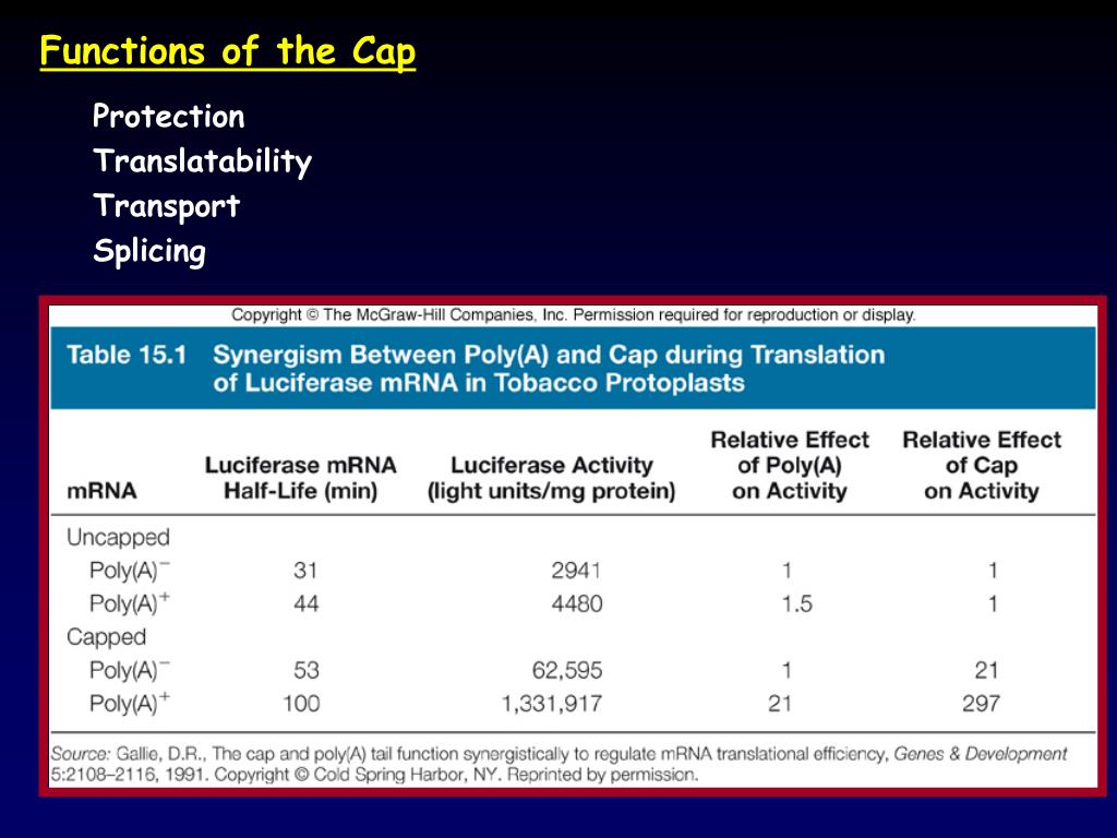 Functions of the Cap • Protection • Translatability • Transport • Splicing