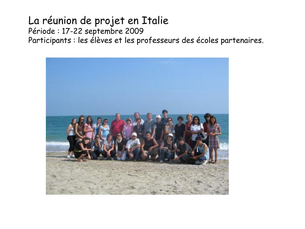 La réunion de projet en Italie Période : 17-22 septembre 2009 Participants : les élèveset les professeurs des écoles partenaires.