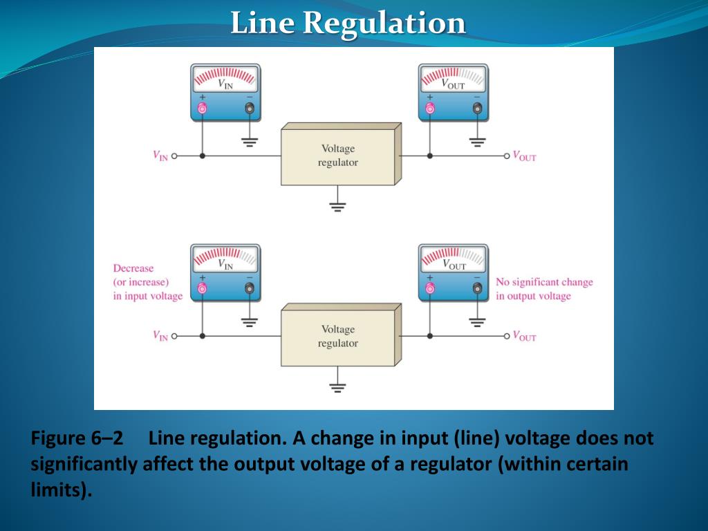 Line Regulation Figure 6–2 Line regulation. A change in input (line) voltage does not significantly affect the output voltage of a regulator (within certain limits).