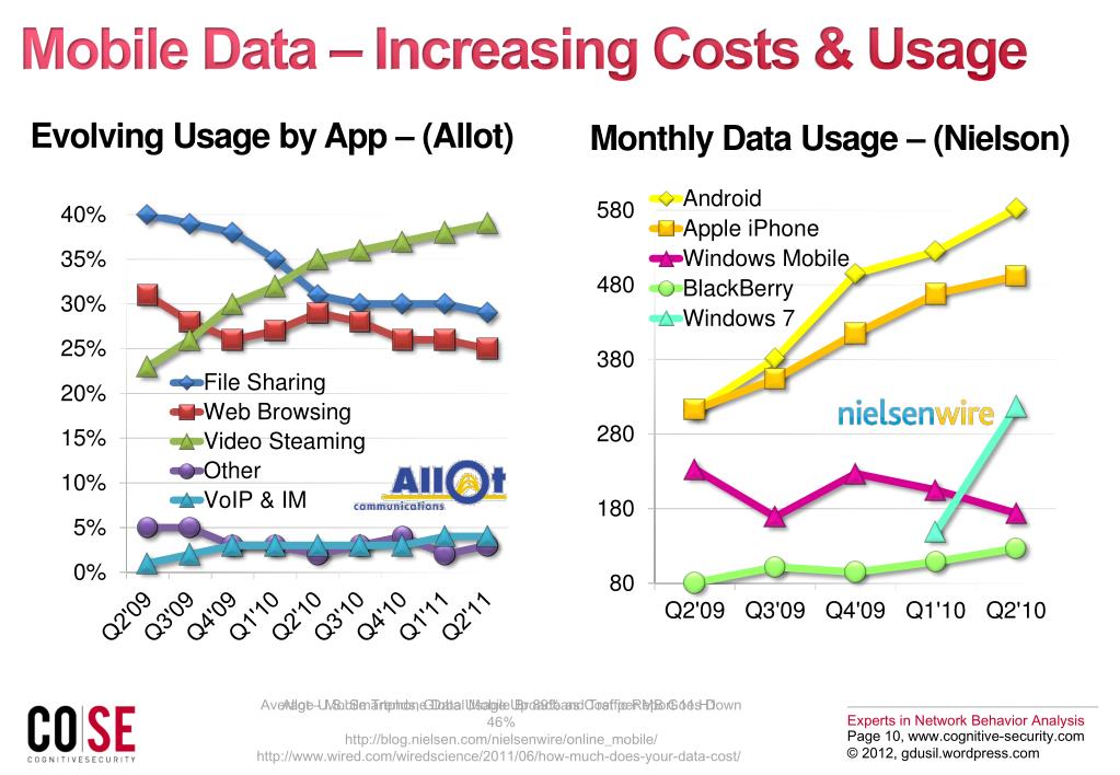 Mobile Data – Increasing Costs & Usage • Evolving Usage by App – (Allot) • Monthly Data Usage – (Nielson) Allot – Mobile Trends, Global Mobile Broadband Traffic Report 11.H1 Average U.S. Smartphone Data Usage Up 89% as Cost per MB Goes Down 46% http://blog.nielsen.com/nielsenwire/online_mobile/ http://www.wired.com/wiredscience/2011/06/how-much-does-your-data-cost/