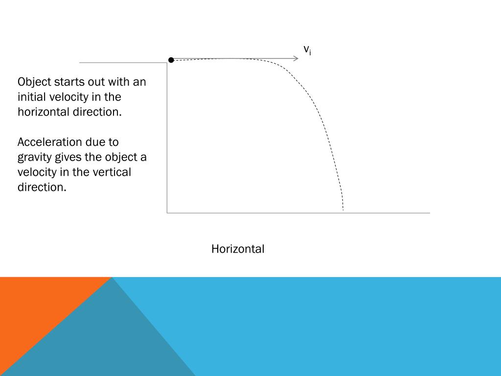 vi Object starts out with an initial velocity in the horizontal direction. Acceleration due to gravity gives the object a velocity in the vertical direction. Horizontal