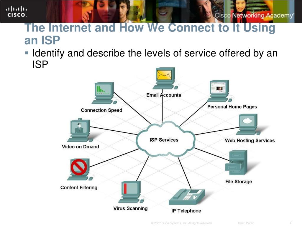 The Internet and How We Connect to It Using an ISP • Identify and describe the levels of service offered by an ISP