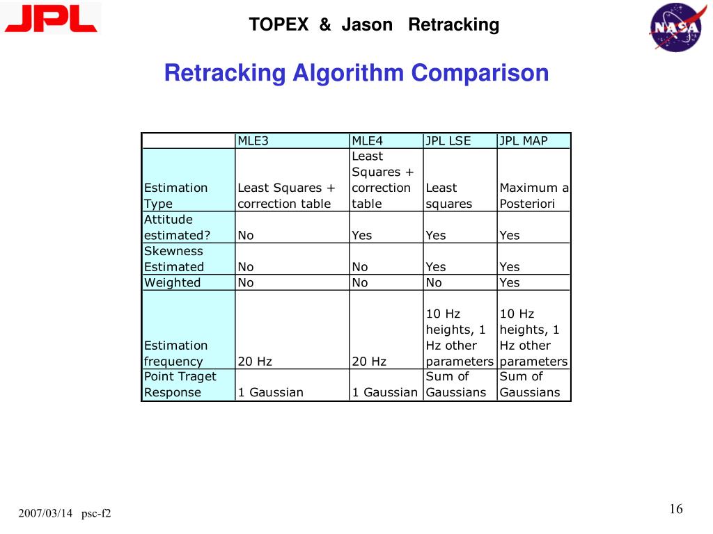 Backup / Previous Material OSTST ‘07 TOPEX and Jason Retracking